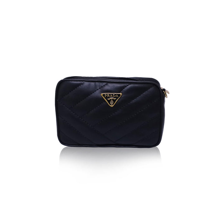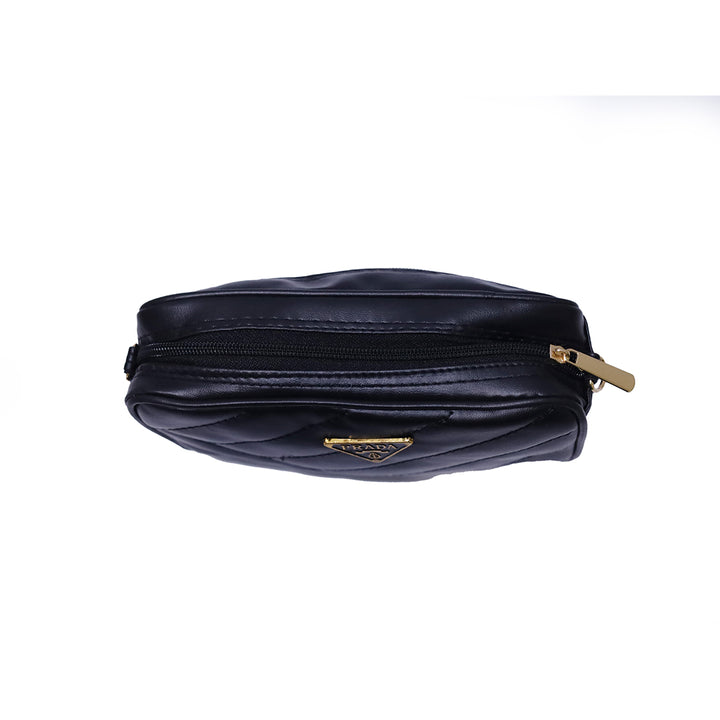 A sleek and versatile Prada quilted nylon pouch, designed with a luxurious gold-tone logo plaque. Perfect for carrying essentials in style, this compact yet elegant accessory combines practicality with timeless sophistication.