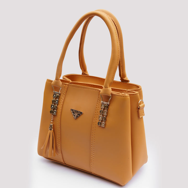 Make a bold statement with this Prada-inspired handbag in an eye-catching mustard yellow. With its elegant embellishments and refined structure, this bag is a standout piece for any wardrobe.